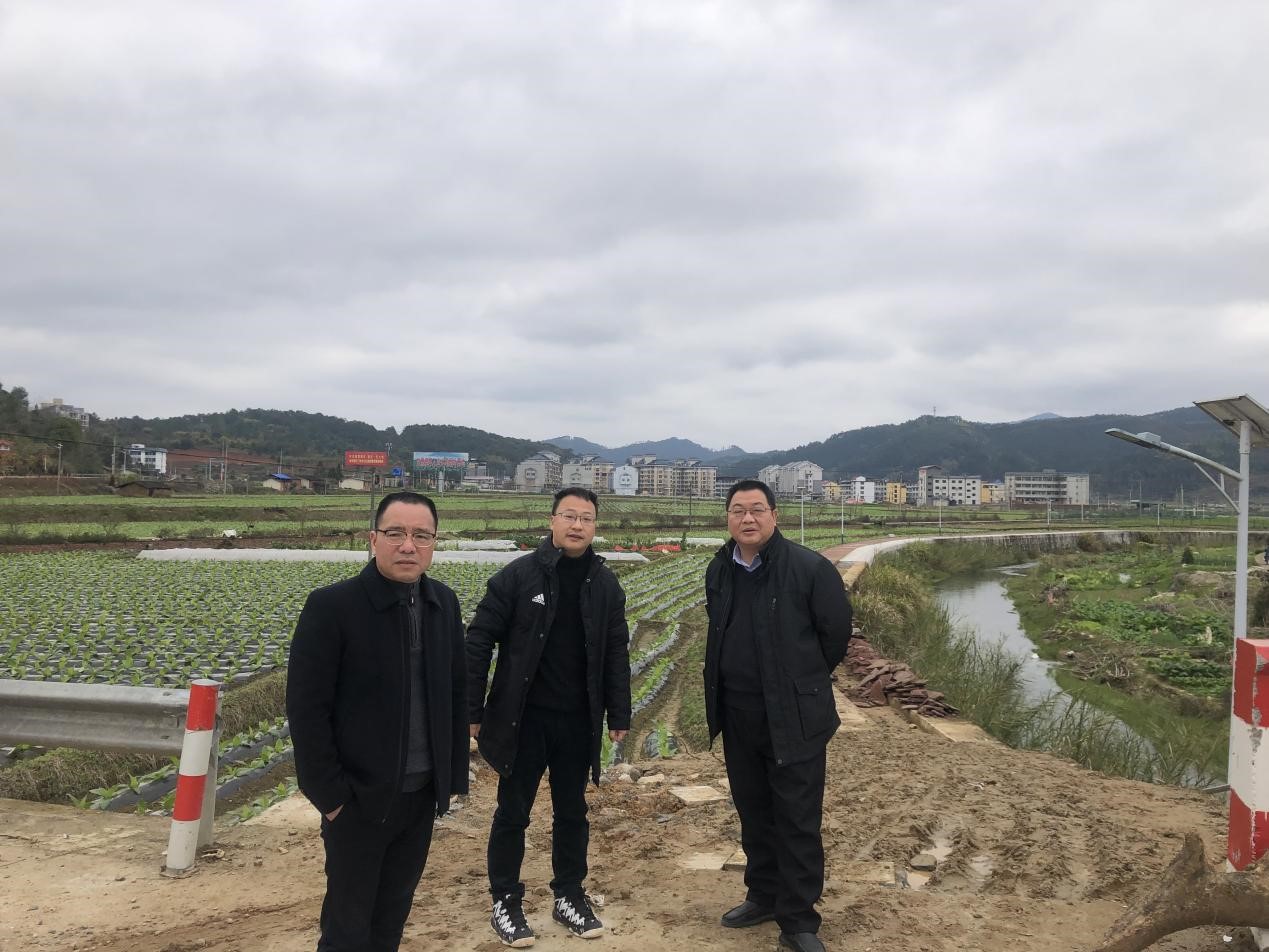 谢荣年一行实地察看了俞邦片区田间道路、夏茂稻种基地至枧头桥沿河步道等建设项目。