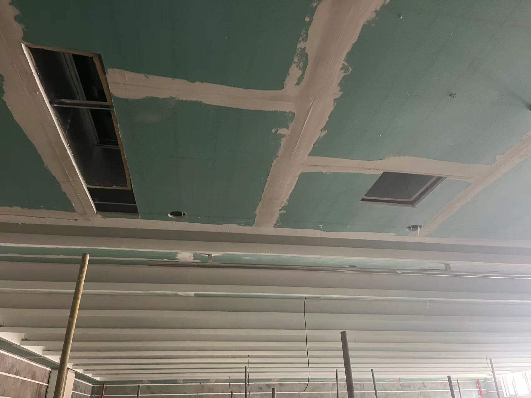 完成地下室画线、铝合金窗安装和室内地面墙面砖铺贴。基本完成2楼和3楼吊顶封板、水电安装、主电缆敷设、电梯安装。