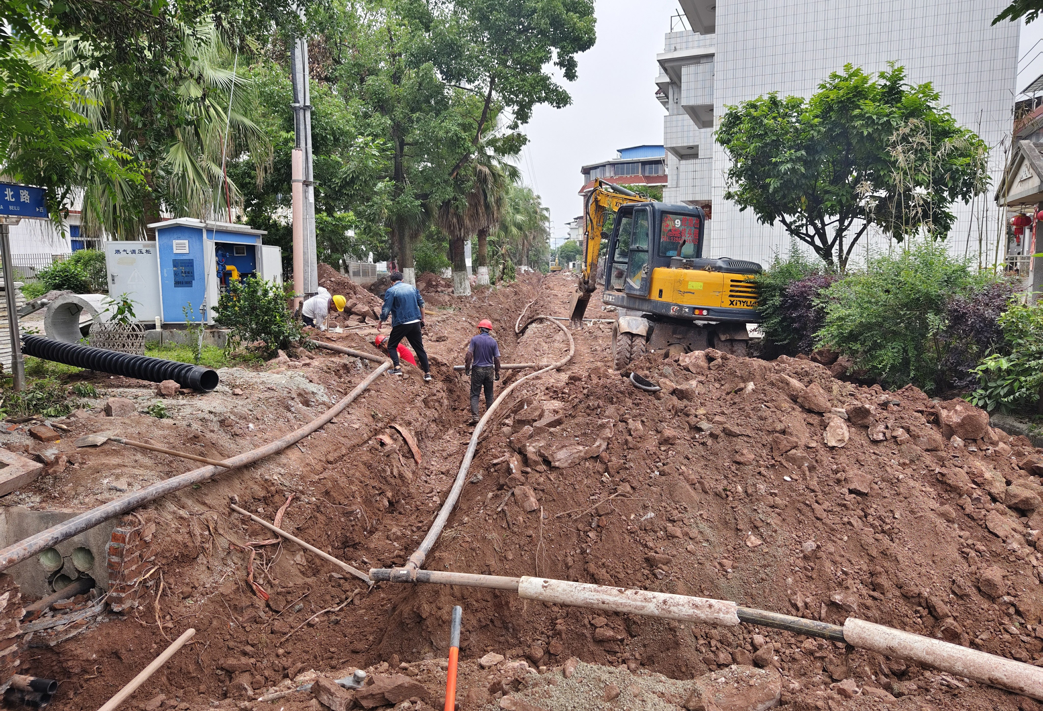 道路路槽整平1680平方米,通信管道安装240米。