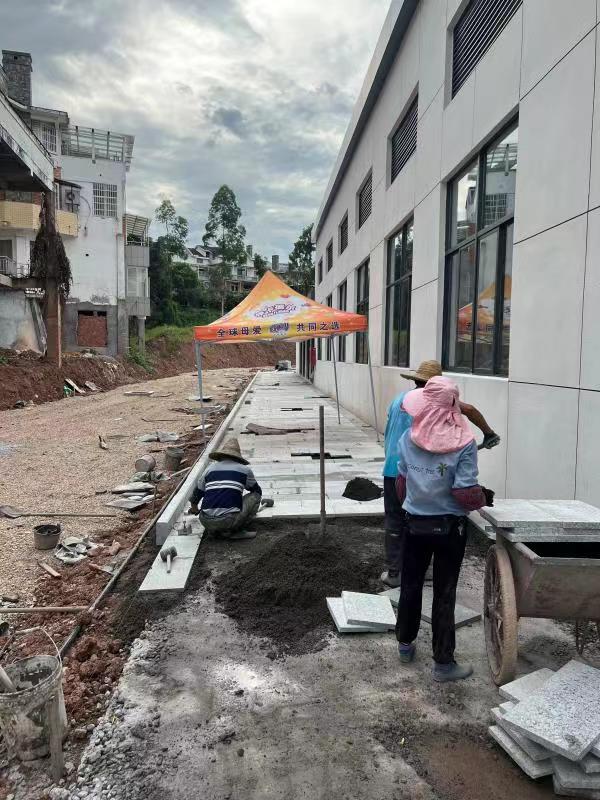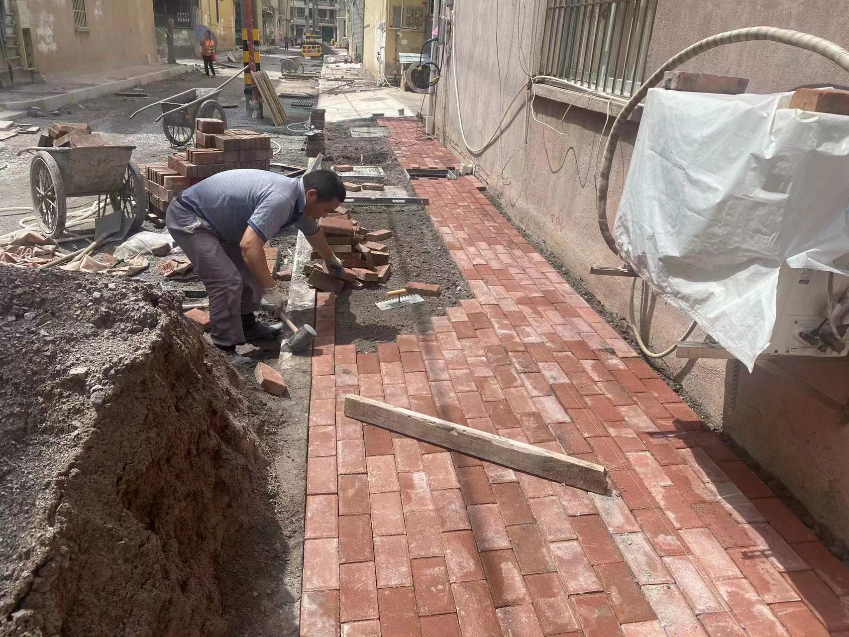 雨水管施工50米,人行道透水砖铺贴400平方米。