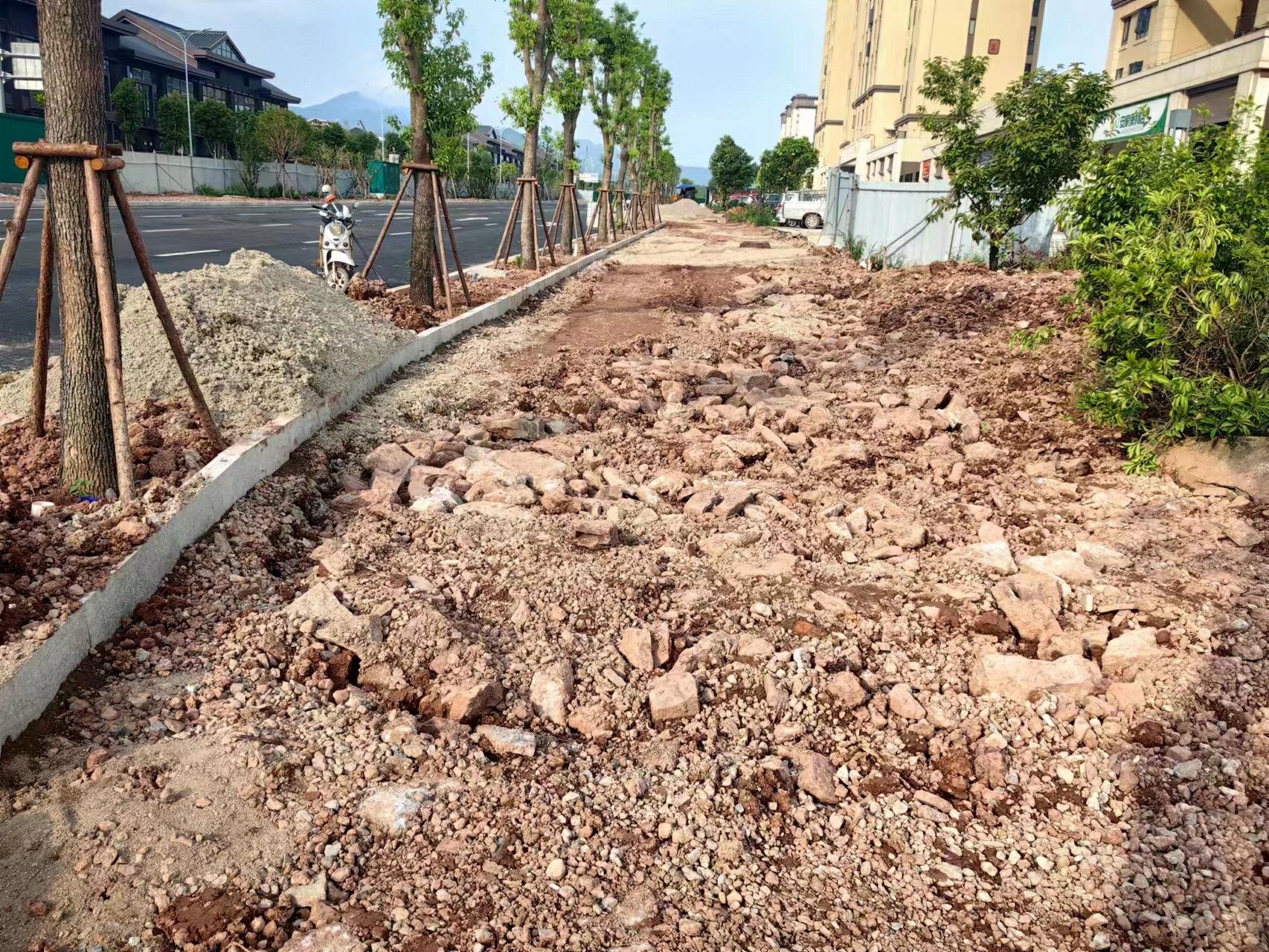 完成非机动车道及人行道软基换填300立方米。