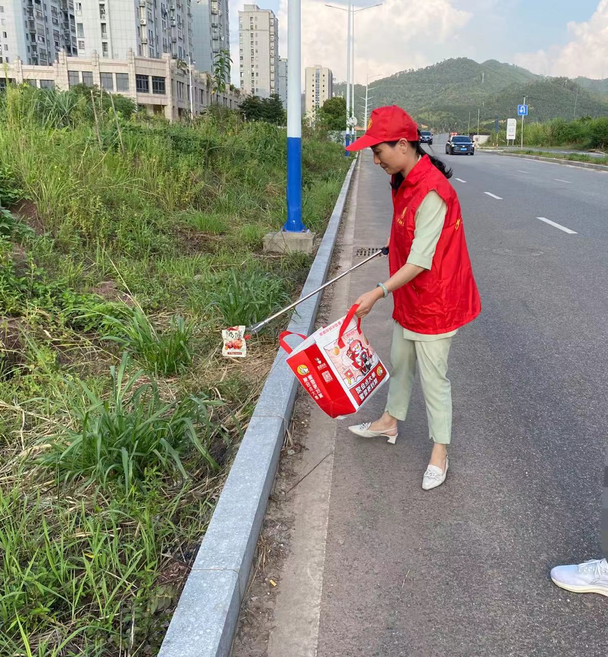 在金古路、南山峡等路段,志愿者们在公交站点站岗维持交通秩序,来回穿梭文明劝导占道经营、引导规范停车,捡拾路面烟头、塑料袋等白色垃圾,铲除墙面小广告,让城市颜值快速变靓。