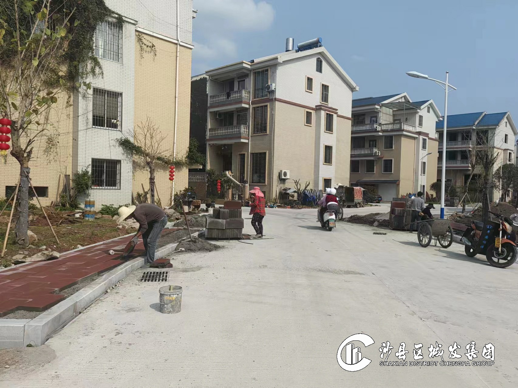 持续推进步道两侧草皮铺贴和建国市场周边道路东侧段路面沥青铺设。