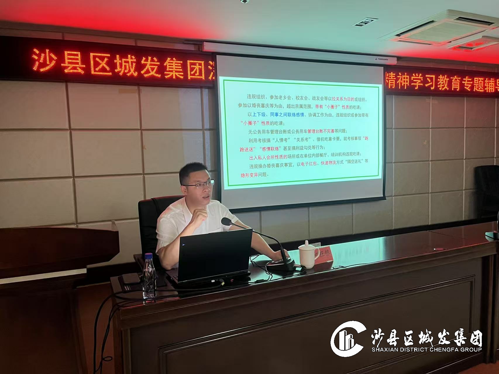 邱老师以《学习贯彻中央八项规定精神 持续推进新时代作风建设》为题,围绕八项规定精神的核心要义、重要意义、实践要求三个方面展开深入解读,用通俗易懂的语言、令人警醒的案例分析,为集团党员、干部上了一堂主题鲜明、内涵丰富、警示深刻的辅导课。