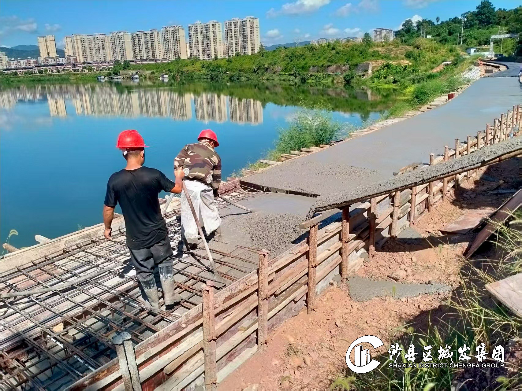 高砂镇堤段:完成高砂段左岸C25框梁砼浇筑350米,现浇生态砼护坡70米。
