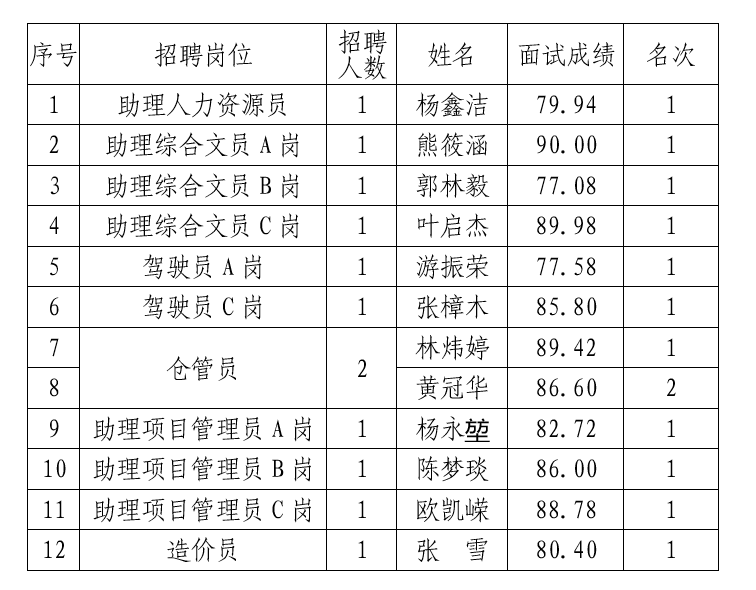 根据《招聘劳务派遣人员公告》,现将本次招聘入围人员公告如下: